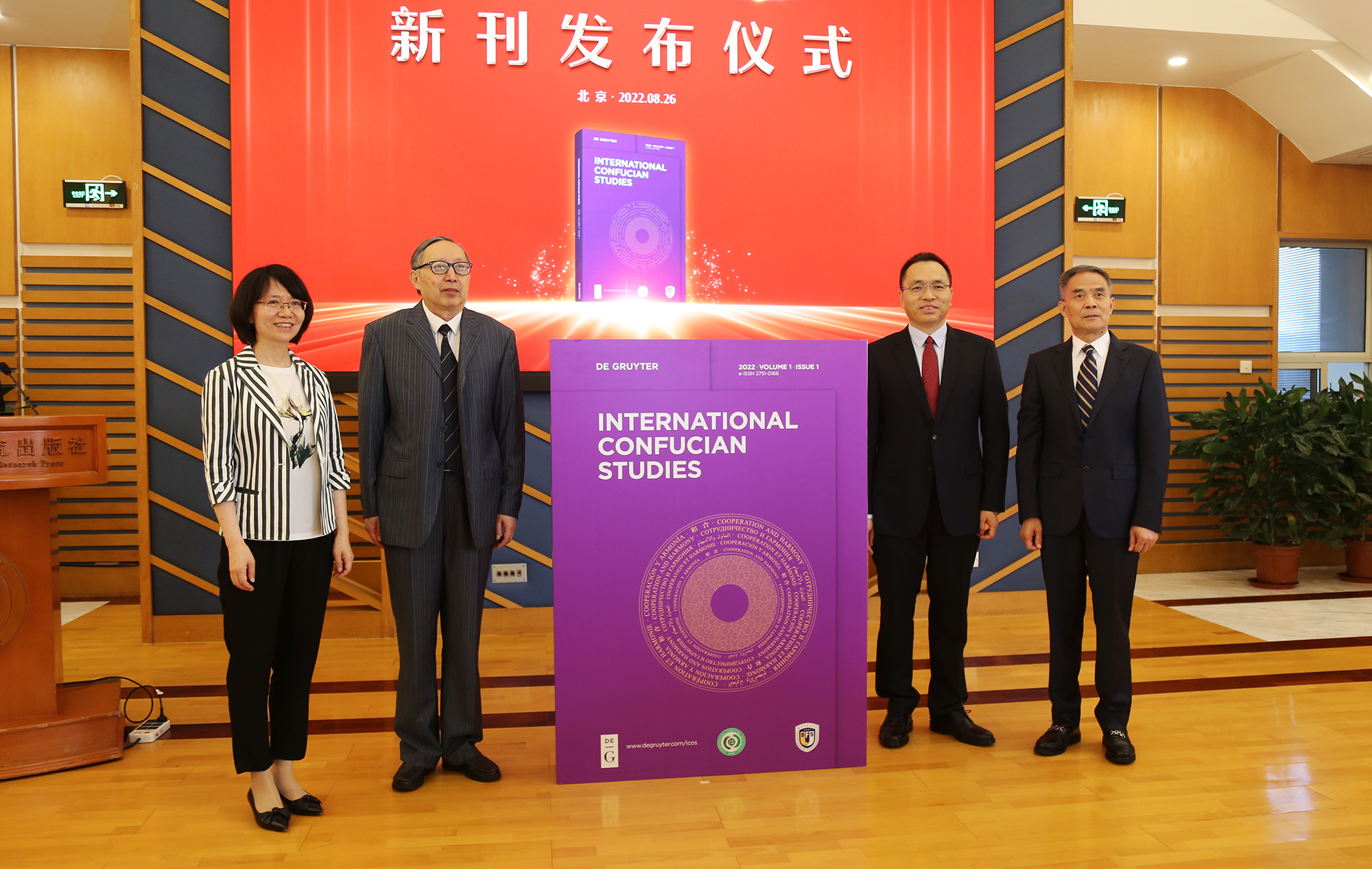 陈睿、陈来、杨丹、贾德永共同为《国际儒学》(英文版)新刊揭幕。(从左至右)
