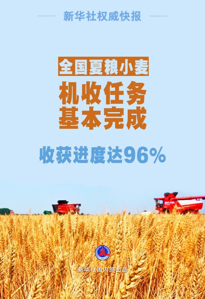 目前,全国夏粮小麦收获进度已达96%,“三夏”小麦机收任务基本完成。