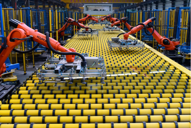 河南省中联玻璃有限责任公司的浮法玻璃智能化生产车间,自动化设备正赶订单。朱祥摄