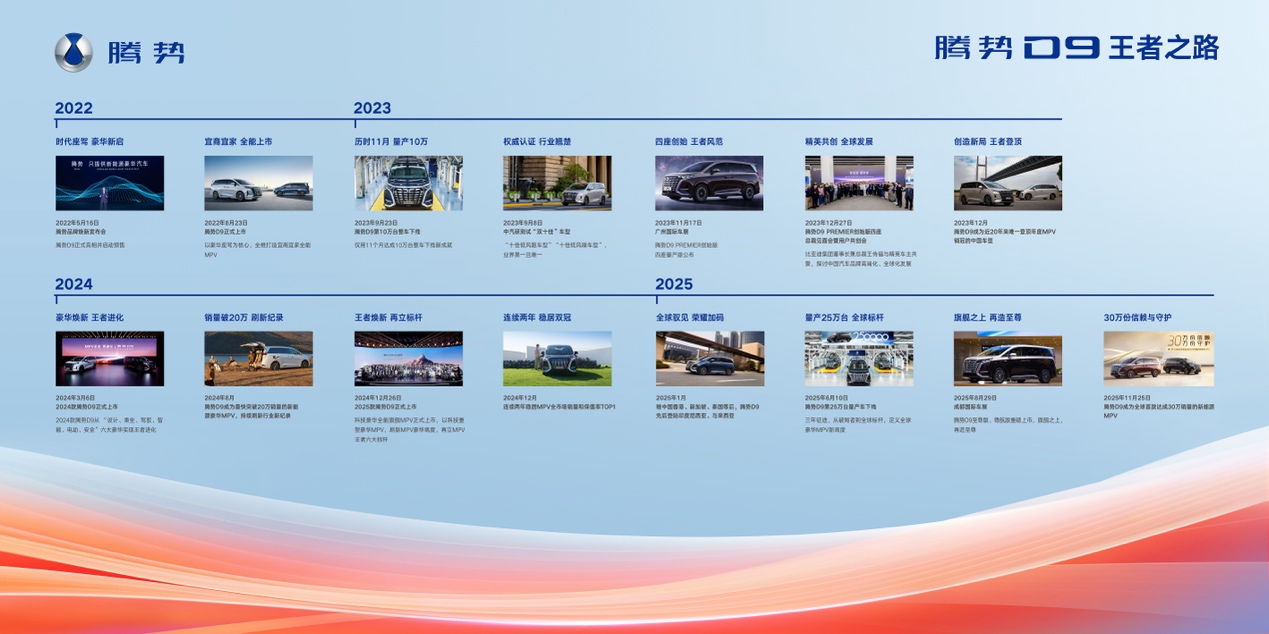 腾势D9的成功,是中国品牌创新发展之路的一个缩影。作为全球首款达成第30万辆交付的新能源MPV,腾势D9如今在更高的起点上持续突破。未来,腾势D9将持续与每一位用户一起向着美好生活,腾势而上!