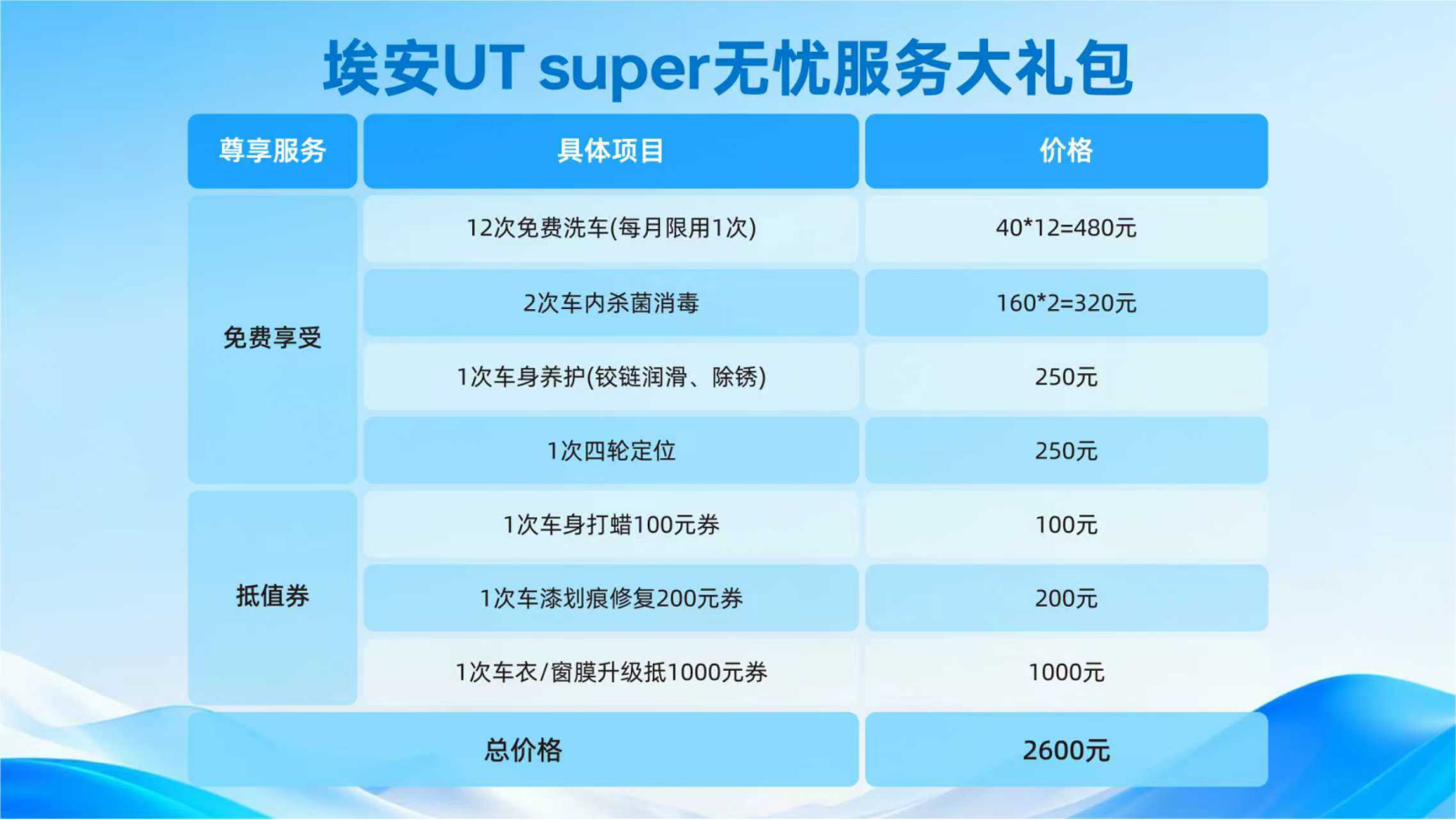 事实上,埃安UT super前期做了很详细的用户调研,以了解用户对“国民好车”最真实的需求。埃安UT super已经实现了多项同级领先的功能配置,如500公里续航、华为云车机、倒车哨兵等,并提供了极致的性价比。同时,埃安UT super还做到了“核心产品价值,体验最优,购买价格和使用成本最优”。租电模式购车价4.99万元、电池月租399元,在业内是唯一一家。此外,对于三方前期服务衔接不足对用户造成的不便,广汽埃安宣布对在12月31日前下定购买埃安UT super的用户加码赠送价值2600元的“无忧服务包”。