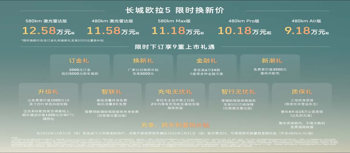 目前,欧拉已经进入全球50多个国家和地区,成为了全球60万用户的共同选择。在激烈的市场竞争中,长城欧拉始终坚持带给用户实际价值。为了让用户真正做到“放心启程、无忧用车”,长城欧拉5以硬核承诺直击用户痛点:让科技配置真正敢用、好用;“跨年购置税补贴”,为用户兜底。这一系列举措,不仅源于长城汽车对自身技术可靠性的底气,更是对“用户至上”的承诺落地——把风险留给厂家,把确定的安全感交还给用户。