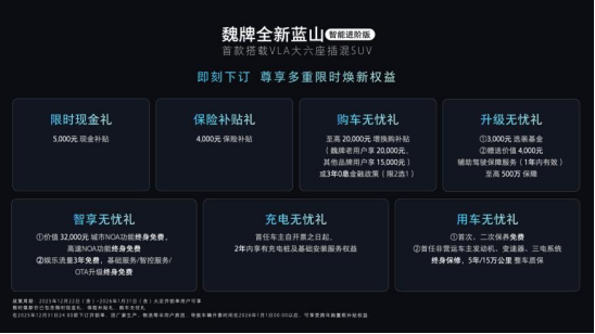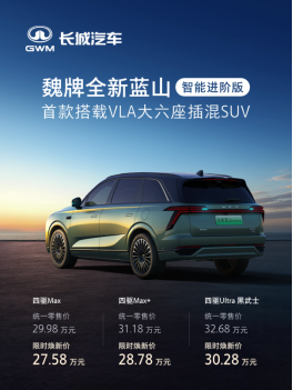 魏牌全新蓝山智能进阶版定位“首款搭载VLA大六座插混SUV”,不仅融合“听得懂、会思考、能交心”的VLA大模型与“省、远、快、稳”兼备的Hi4性能版智能四驱电混技术,实现了VLA+Hi4的高效协同,更在座舱体验与安全防护等维度实现全面进阶,为用户带来了全方位、可感知的升级体验。