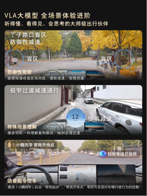 VLA+Hi4,一个提前想到,一个稳稳做到,智能决策与高效执行的深度融合,实现了从“感知-决策-控制”的全链路协同与能力互补。二者就像赛车运动中天衣无缝的黄金搭档:VLA作为“领航员”负责理解、预判与规划;Hi4作为“赛车手”负责精准、稳定与高效执行,两者协同构建了 “主动规避” + “主动稳定” 的双重安全防线,实现了1+1>2的智慧出行体验。