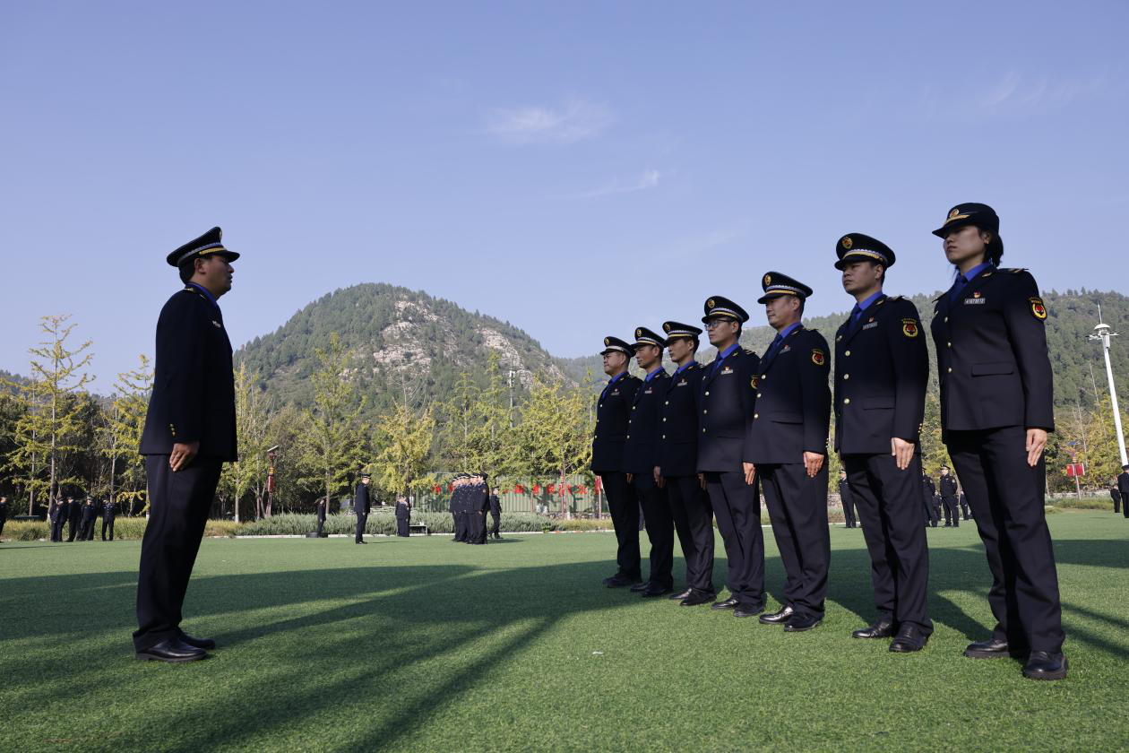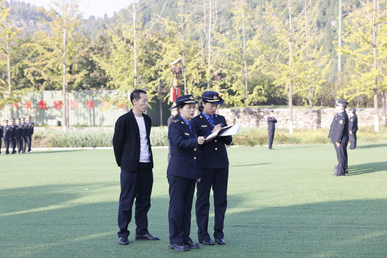 训练场边,新乡市城管局党组成员、副局长、三级调研员谢百军全程督导。他时而驻足观察学员动作,时而与教官交流训练细节。“队列训练不是‘走形式’,教学骨干在组训时要及时纠正队员们的错误动作,做到开展一次训练,保证一次效果,真正练出城管队伍的精气神!”谢百军强调,执法人员的一言一行代表政府形象,必须通过军事化训练培养“令行禁止、雷厉风行”的作风,将“纪律意识”转化为“执法底气”,不断增强执法队伍凝聚力、执行力、战斗力,促使大家以更加优良的作风、饱满的热情、昂扬的斗志投身到集中培训和今后的执法工作中去。