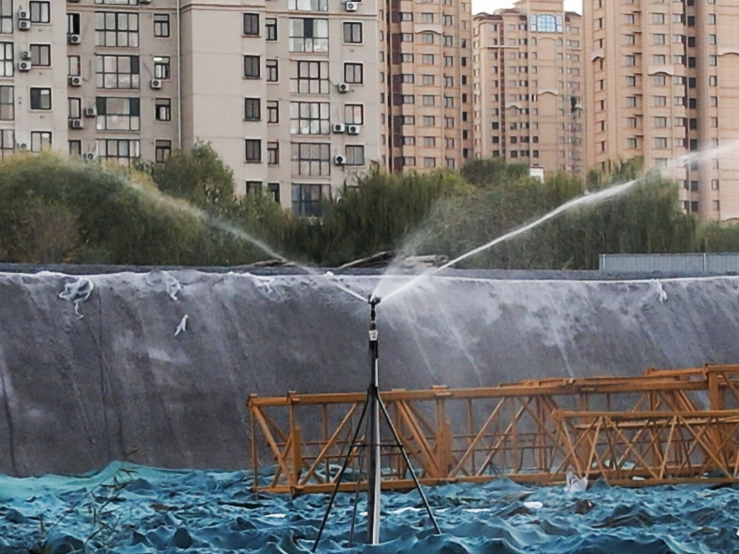 地面喷灌系统全面覆盖,构筑“立体保湿网”。在工地基坑、物料堆放、闲置裸露区域全面布设地面自动喷灌设施。通过定时或感应式喷洒,保持地面湿润,有效防止因风力作用或车辆碾压引起的二次扬尘,从地面源头巩固抑尘效果。
