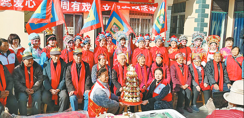 文艺表演环节更是精彩纷呈,多个公益文艺团队的演员倾情献艺,带来经典豫剧曲目展演。《朝阳沟》的质朴鲜活、《打金枝》的婉转悠扬、《红灯记》的铿锵有力、《穆桂英挂帅》的豪迈激昂,一段段经典剧目片段轮番上演,演员们精湛的演技、饱满的情感,赢得现场老人们阵阵热烈掌声。大家一边欣赏演出,一边闲话家常,现场氛围温馨融洽,暖意十足。“今天能集体过生日,看演出,和老姐妹们一起聊聊天,真是太高兴了,非常感谢村里和志愿者的辛苦付出。”今年86岁的刘秀英老人难掩激动之情,朴实的话语里满是喜悦与感激。
