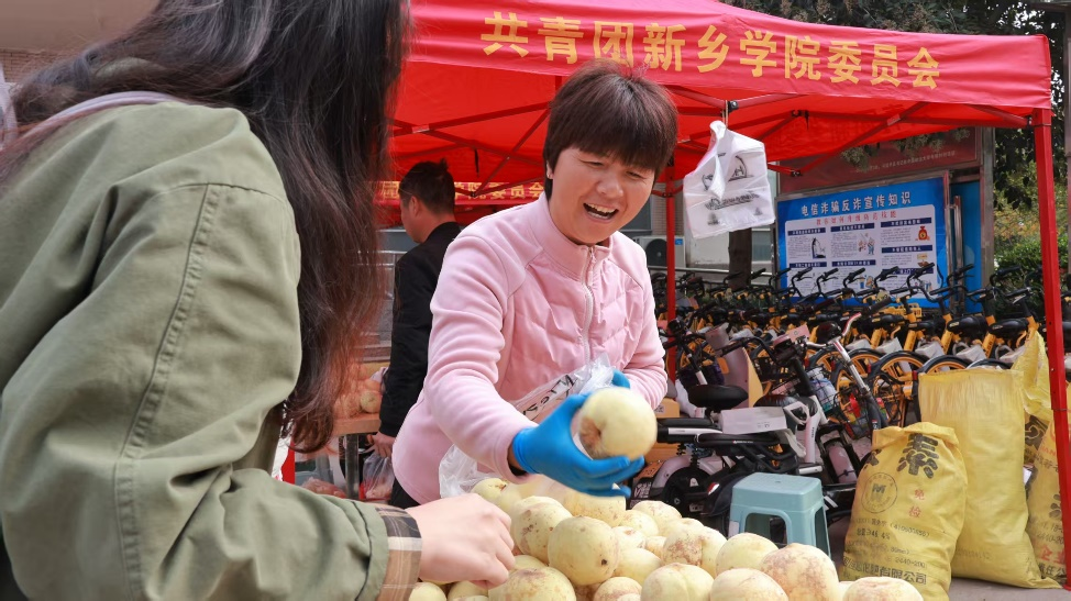 “刚摘的雪桃还带着露水,这就被抢着订了!”10月21日,原阳县九龙泉村果农娄周伟的笑声里满是欢喜——当天,新乡学院以“雪桃飘香促振兴”为主题的帮扶雪桃展销会火热开场,不仅让全校师生尝到了鲜脆甜美的雪桃,更让村里的桃果产业迎来了“丰收又增收”的好光景。周边的居民也特意到校参与助农消费,不少人拎着装满雪桃的袋子笑着说“听说校园里的助农桃新鲜又实惠,特意绕路来支持”,现场摩肩接踵的热闹场面还在邻里间口口相传,让这场校园帮扶活动跳出“围墙”、火爆出圈。