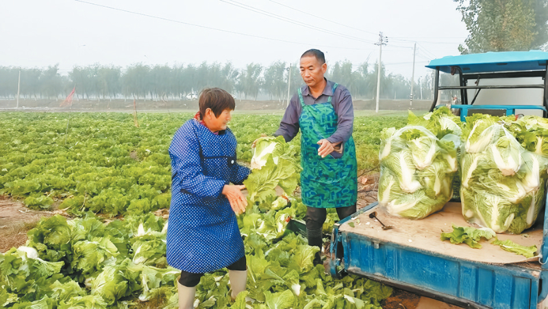 本报讯 (记者 张世彬 通讯员刘晓阳)11月1日,时值深秋,原阳县原兴街道八里庄村的白菜迎来了集中采收上市的季节。清晨的薄雾尚未散尽,田间地头已是一片繁忙景象,村民正将一棵棵翠绿饱满、品相喜人的大白菜装车,准备运往市场售卖。