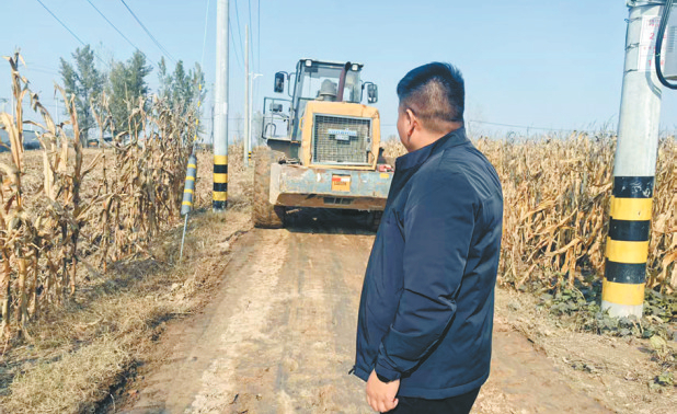 面对群众秋种运输困境,村党支部书记陈东方没有迟疑,他第一时间深入田间地头勘察路况,逐段记录道路损毁情况,当天便敲定平整方案。随后,村里迅速协调到大型铲车,一场“保路护秋种”的攻坚战在田间迅速打响。
