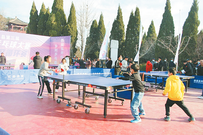 本报讯 (记者陈曙光通讯员张攀)12月6日,一场别开生面的乡村乒乓球大赛在获嘉县同盟山武王庙景区拉开战幕。本次赛事以“体育搭台、旅游唱戏、文化赋能”为主题,吸引了来自获嘉县5个乡镇的100多名乒乓球爱好者同场竞技。