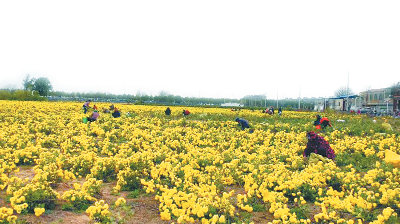 据了解,依托基地生产的优质鲜菊花原料,当地相继研发了菊花茶等一系列附加产品,建成标准化加工车间5000平方米,形成集育苗、种植、采摘、烘烤、销售于一体的完整产业链,有效带动了当地农民增收致富。