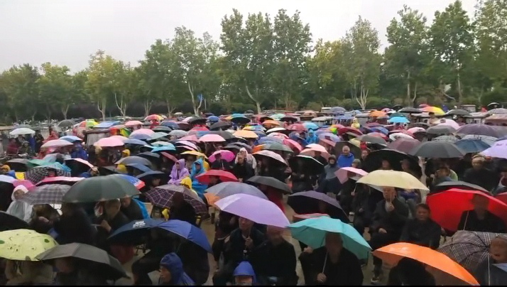 10月4日午后,秋雨裹着凉意斜斜落下,辉县市博物馆广场的舞台前却早已聚起一片“伞海”。76岁的郭顺大爷裹着深蓝色雨衣,吃完饭也顾不上休息一会儿,赶着来占个好位置。“就等《穆桂英挂帅》呢!俺以前在村里看戏事儿多心不静,看了个热闹。现在年纪大了也没事干了,就一静心地好好看戏,这雨天也影响不了看戏的劲头!”他笑着往人群里挤。