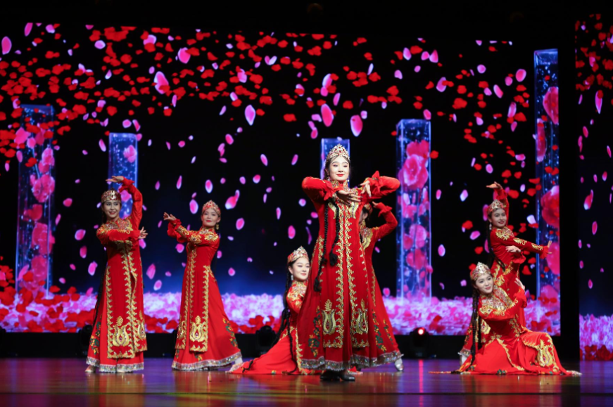 大型歌舞《美丽新疆》由新乡市群众艺术馆和伊吾县文化体育广播电视和旅游局共同打造,以宏大的场面和精彩的表演,全方位展现新疆的美丽与富饶。演出最后,全场共同合唱《我和我的祖国》,用嘹亮的歌声表达对祖国的热爱与祝福,天山与太行的情谊在歌声里凝聚,将现场气氛推向高潮,为演出画上圆满句号。