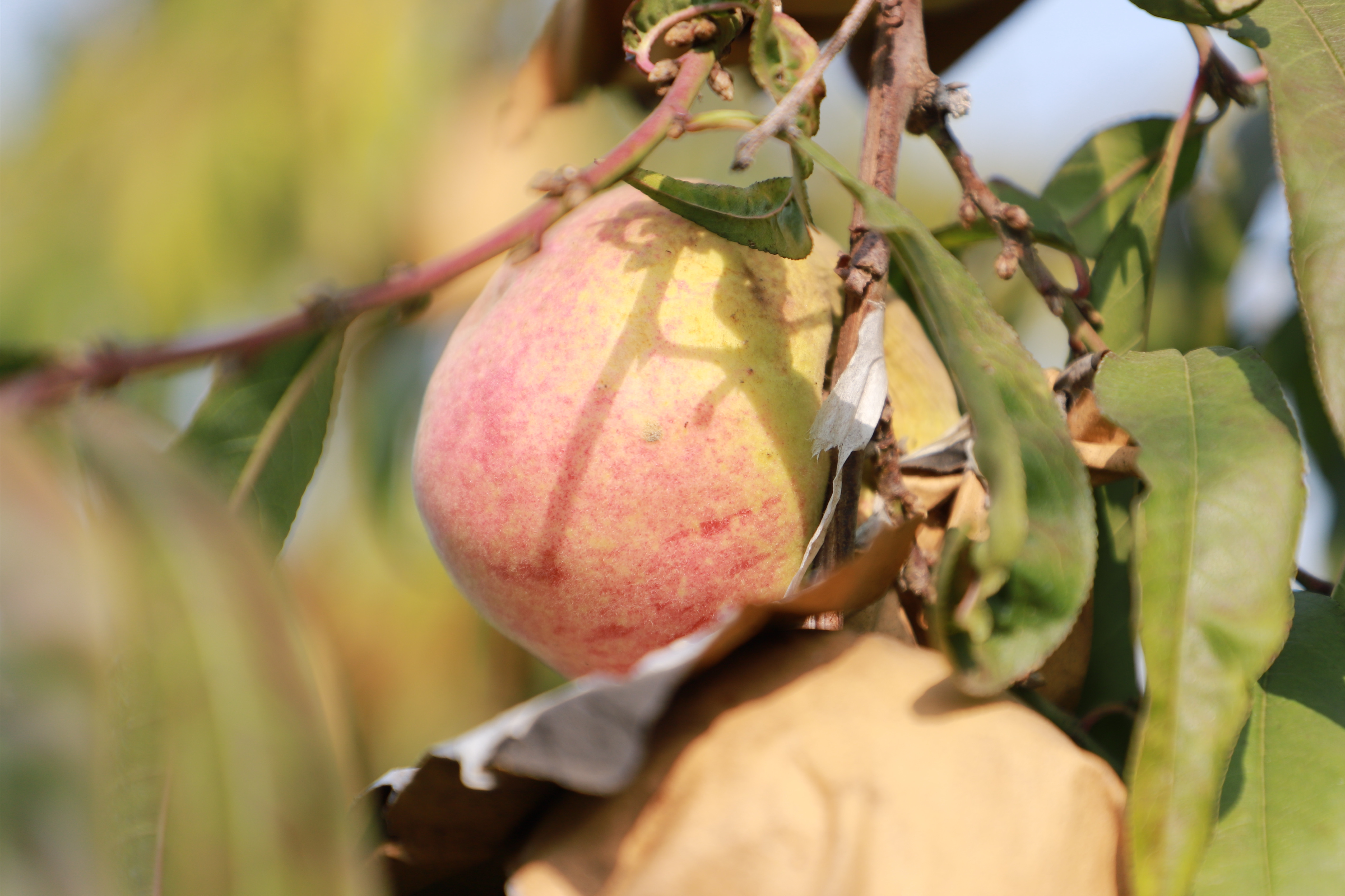 “开车仅需10分钟就到这里,采摘冬桃犹如开盲盒,从枝头揭开纸袋,掏出鲜桃,擦擦桃皮直接上嘴,冬桃汁水足、甜度高,很惬意……”在桃园枝杈间,记者对着摄像机直接做起了“带货主播”。