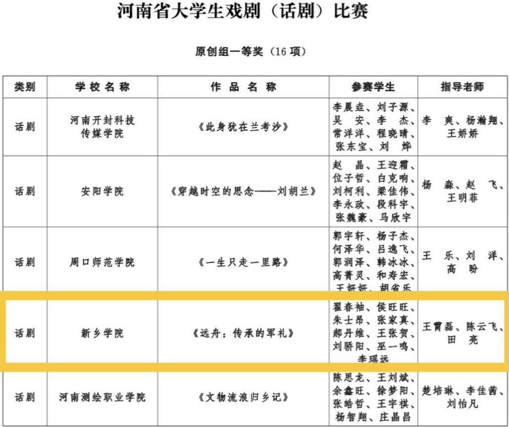 近日,由中共河南省委宣传部、共青团河南省委、河南省教育厅、河南省文化和旅游厅、河南省科学技术厅、河南省体育局、河南省学生联合会七部门联合主办的河南省第二十届大学生科技文化艺术活动戏剧(话剧)大赛结果揭晓。新乡学院原创话剧《远舟:传承的军礼》凭借深刻的思想内涵、精湛的舞台表现和真挚的情感表达,从全省众多参赛作品中脱颖而出,荣获大赛一等奖。这一荣誉不仅展现了该校师生扎实的艺术功底与创新精神,更彰显了新时代青年对家国情怀的深刻理解与传承,也是学校国防教育及思政教育成果的生动体现。