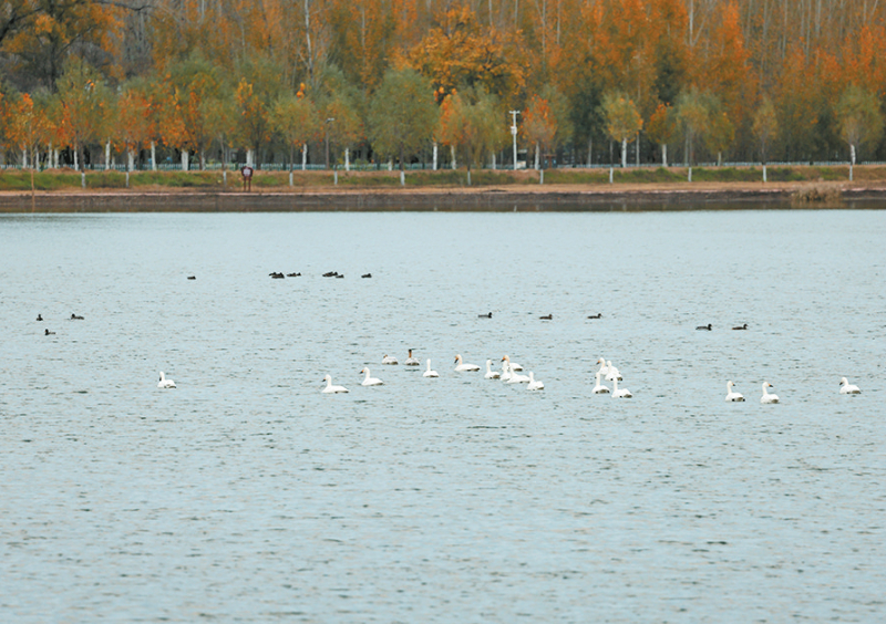 水利工程管理人员介绍,这已是今年记录到的第二批天鹅种群。此外,还有水鸭、白鹭等水鸟也选择在此栖息。这也意味着周边区域生态环境和水资源条件正在不断优化,水利工程在服务经济社会发展的同时,也有效助力了生物多样性保护与生态平衡。