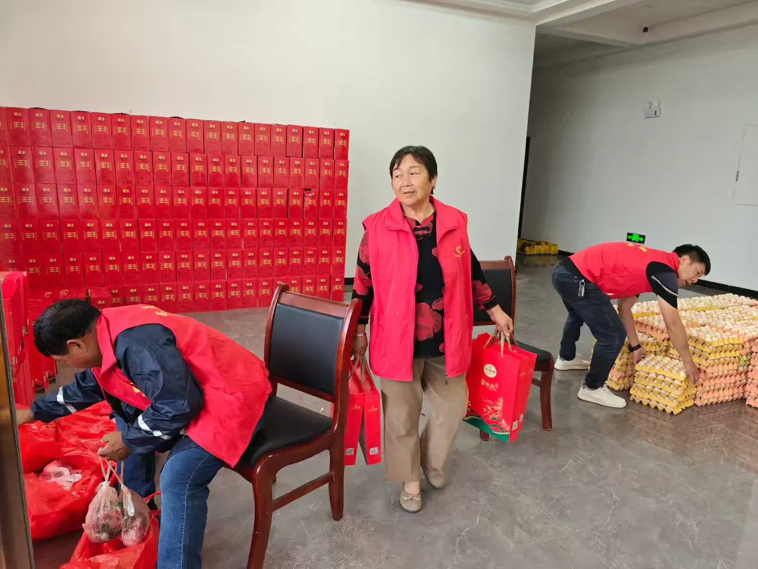 发放当日,后高庄村两委、党员、代表、志愿者早早布置好发放点位,将包含山药、腐竹、月饼、鸡蛋、大肉等物品的节日礼包准备妥当。现场工作人员各司其职,耐心引导,确保发放工作井然有序。一递一接之间,传递的不仅是沉甸甸的节日物资,更是村两委对全体村民的诚挚关怀与美好祝愿。