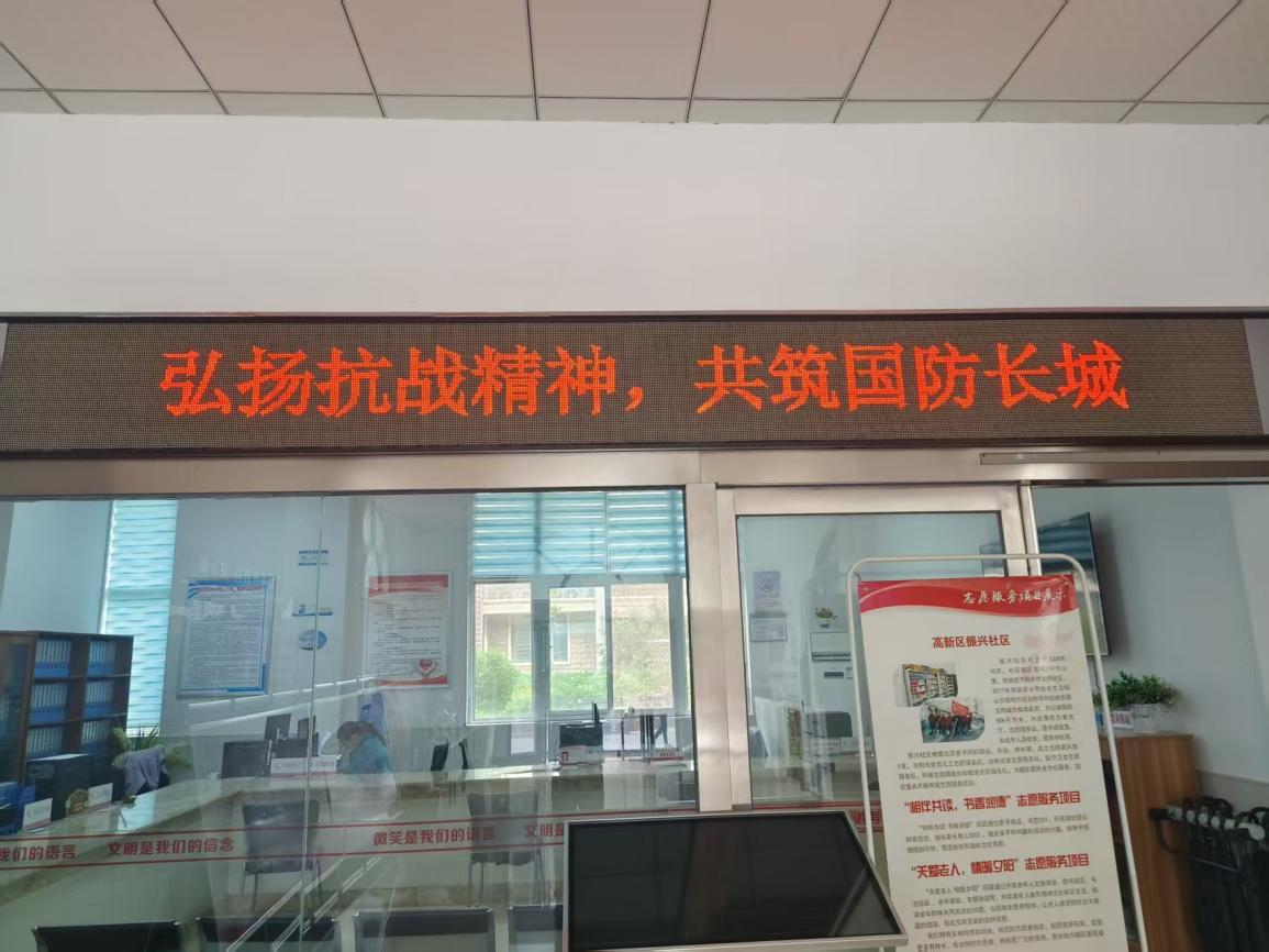 为扩大宣传覆盖面,充分利用社区资源,在大厅电子显示屏持续滚动播放国际减灾日宣传语及核心知识点,让居民们了解各类灾害的防范要点。