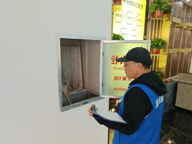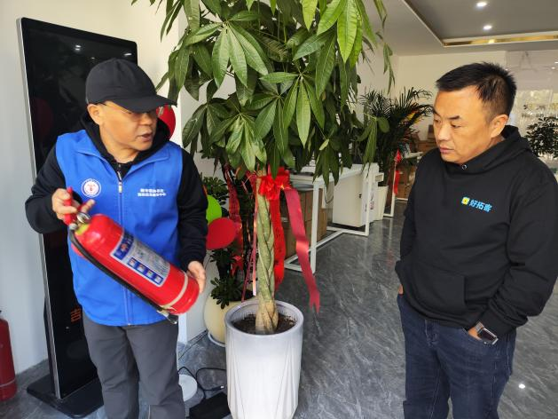 社区工作人员逐户进行摸排走访,重点核查门店消防器材配备是否合规、灭火器是否过期失效、消防栓有无损坏缺失,严查私拉乱接电线、疏散通道及安全出口堵塞等隐患。同时,向辖区商户普及用火、用电、用气安全及防灾减灾知识,督促商户落实定期自查制度,切实拧紧“安全弦”,从源头杜绝隐患。