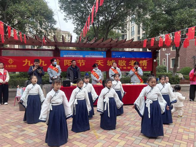 童心敬老,代际情深。大同幼儿园的孩子们身着传统汉服,用稚嫩而认真的舞步,为爷爷奶奶们献上充满韵味的国学舞蹈,精彩的表演不仅带来视觉享受,更在老少心灵间架起了沟通的桥梁。表演间隙,孩子们还主动与爷爷奶奶们亲切互动,分享快乐,让尊老爱老的种子悄然播撒在幼小的心田,新老交融,欢声笑语不断,生动展现出社区和谐融洽的精神风貌。
