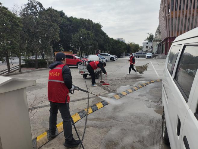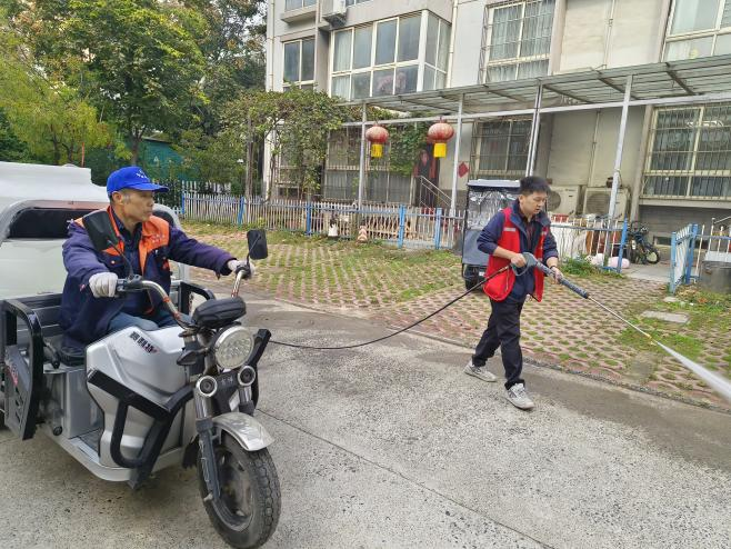 多区域覆盖,清洁无死角。在小区庭院,工作人员利用高压冲洗设备,对路面、绿化带边缘等区域进行细致冲刷,强劲水流有效清除了顽固污渍、落叶积尘,使路面重现洁净本色。同时,庭院内的公共设施也经过仔细冲洗和擦拭,整体面貌焕然一新。