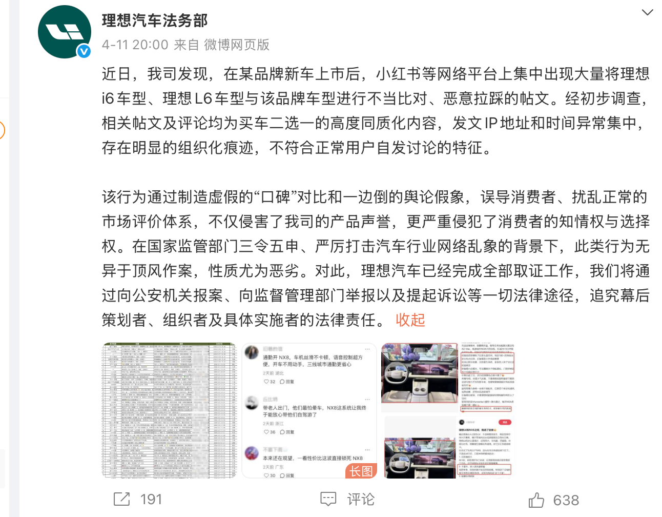 理想汽车法务部官方微博截图