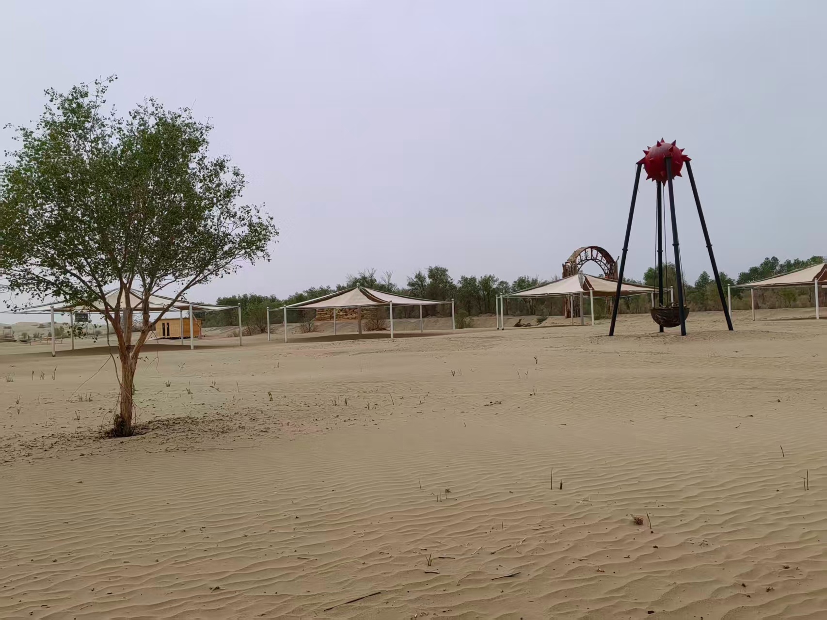 景区一期规划面积45平方公里,东边紧靠尉且沙漠公路,交通便利;南边是一望无际的塔克拉玛干沙海,也是车友驰骋沙漠,征服自然的天然赛场;西面是广阔的戈壁,视野开阔;东西走向的塔里木河古河道,成为沙漠与绿洲的分界线,北边生长着茂密的原始胡杨林。景区有自驾游营房、沙漠车冲浪场、树稍宾馆、骆驼驿站等项目。