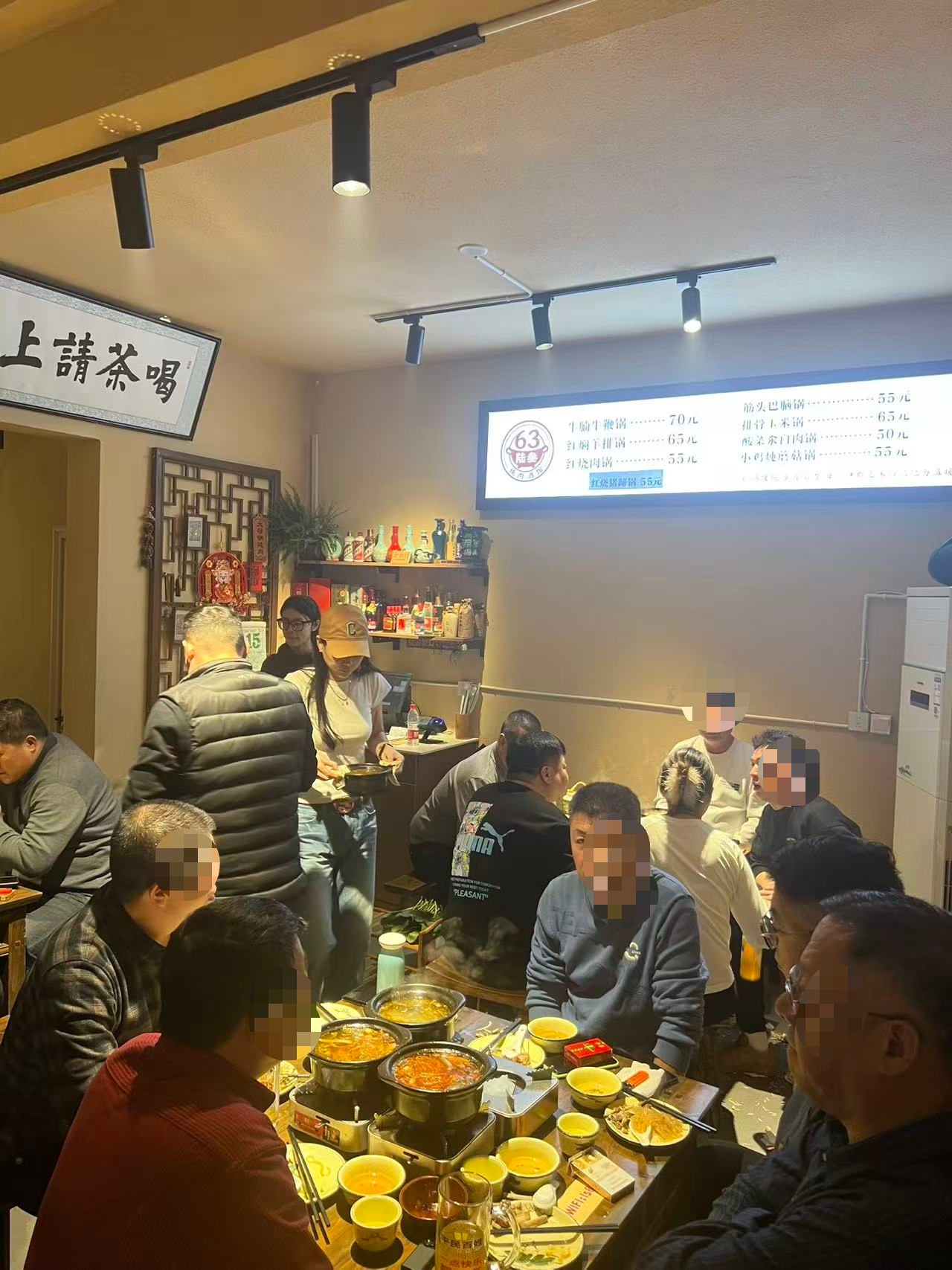 前阵子落雪,一位裹着厚围巾的阿姨牵着小孙子推门进来,笑着说自己1963年生人,见着店名就觉得格外亲切。店员立马端上免费老白茶暖手,小孙子盯着墙上的logo好奇发问:“怎么有三个6呀?”正巧老板路过,蹲下来指着图案温柔解释:“一个6是肉香绕舌尖,一个6是热汤暖脾胃,最后一个6呀,是盼着你来这儿,吃好喝好,天天开心!”阿姨听得眉眼弯弯,尝一口炖肉直夸像家里的味道,连砂锅里的萝卜都炖得软乎乎、糯叽叽,和小时候妈妈做的滋味儿一模一样。