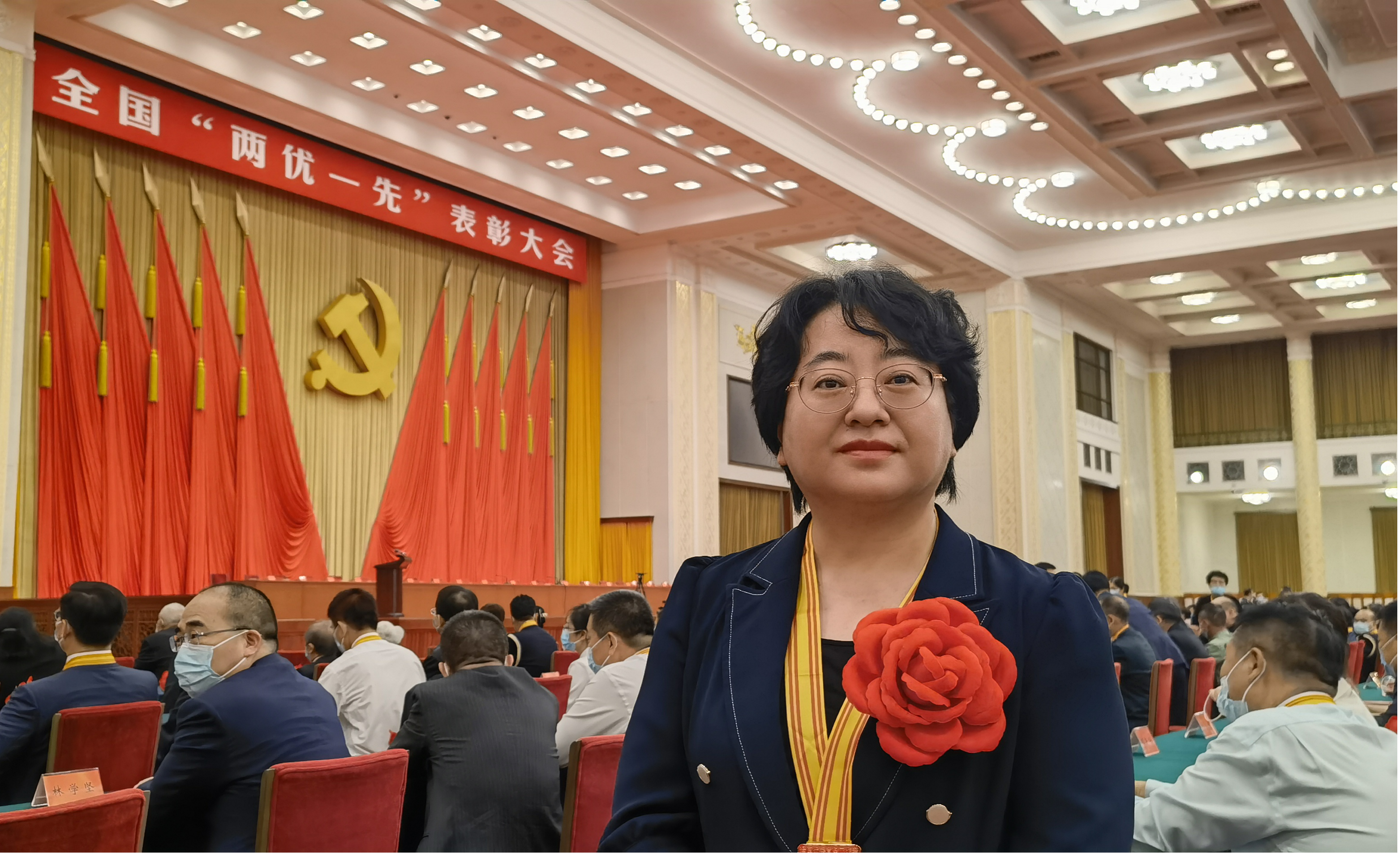 图:侯莉在人民大会堂接受表彰