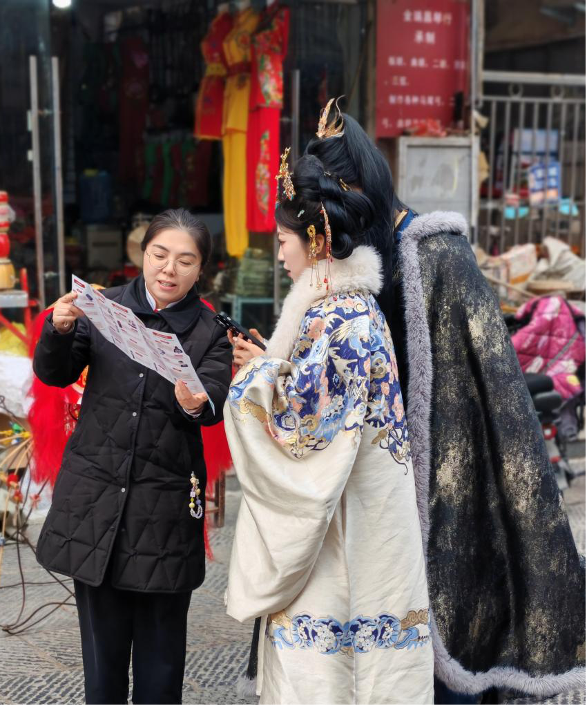 针对节假日期间景区人流量大、现金使用频繁的特点,该行将宣传力量精准投放到重点区域和重点人群。在丽景门、十字街、洛邑古城等游客聚集地,宣传志愿者重点面向景区商户、老年游客、流动摊贩等现金收付频繁群体,以及穿着汉服体验传统文化的年轻游客,开展差异化、精准化宣传。通过“一对一”讲解、“面对面”答疑,确保宣传内容入脑