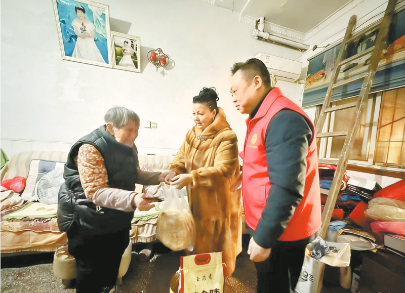 新疆亚克西饭店经理吾麦尔·买买提及爱人将大米、食用油、鸡蛋等生活物资逐一发放至保洁员和困难群众手中,用实际行动致敬基层劳动者。新疆亚克西饭店相关负责人与社区党委书记一同入户走访孤寡老人,询问老人的身体状况与生活需求,唠家常、献爱心,让他们在寒冬中感受到跨越民族的温情与牵挂。