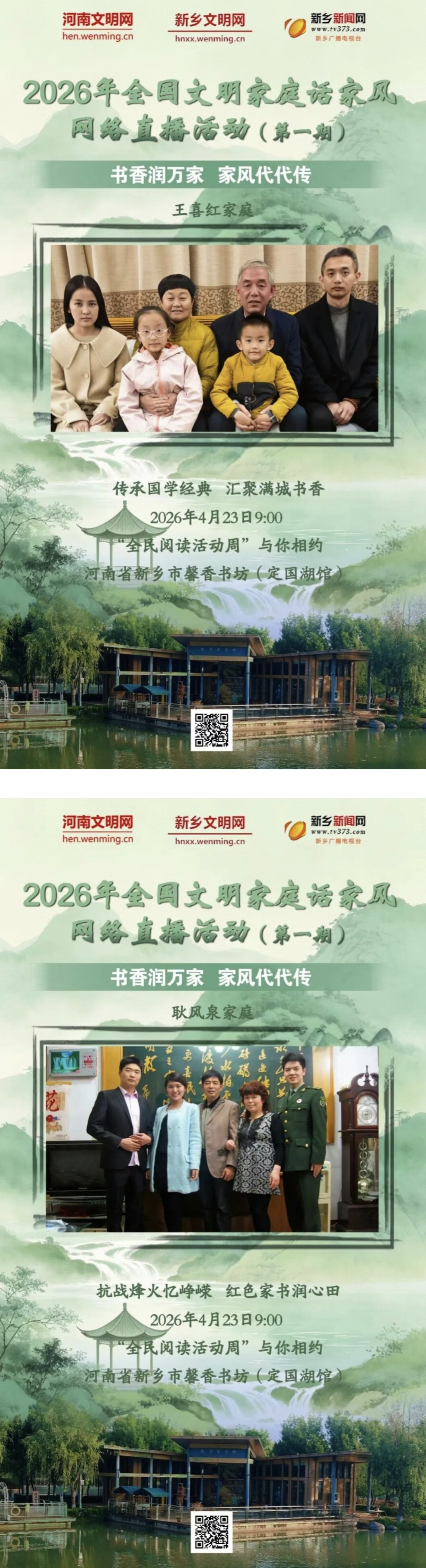 在4月23日世界读书日到来之际,河南文明网联合新乡文明网、新乡广播电视台开展2026年全国文明家庭话家风网络直播活动。