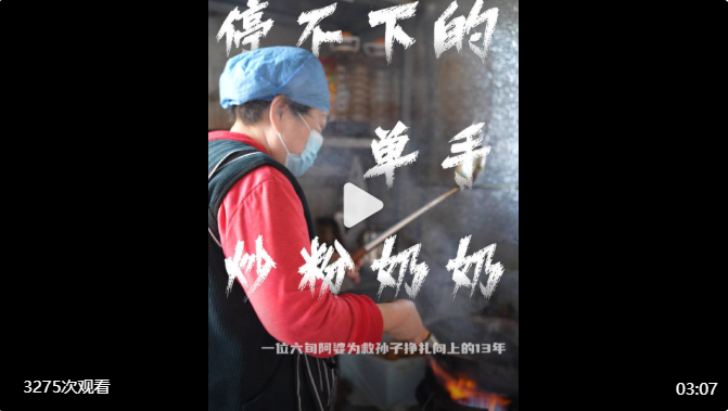 近期,网络一条“奶奶单手炒粉救治孙子,顾客留下爱心红包”的视频火了。2013年,詹阿婆的孙子查出患弥漫性血管瘤,阿婆独自扛起带孙寻医的重担,边开炒粉店,边带孙治病。今年3月初,阿婆在小店滑倒左手骨折,靠单手炒粉引发网友爱心点单和捐款。面对各方善意,詹阿婆非常感激,但也表示:“大家不要捐钱,钱我会自己努力挣,网友的善款会给环卫工和困难人士做爱心餐,欢迎大家来吃粉!”(刘鑫)