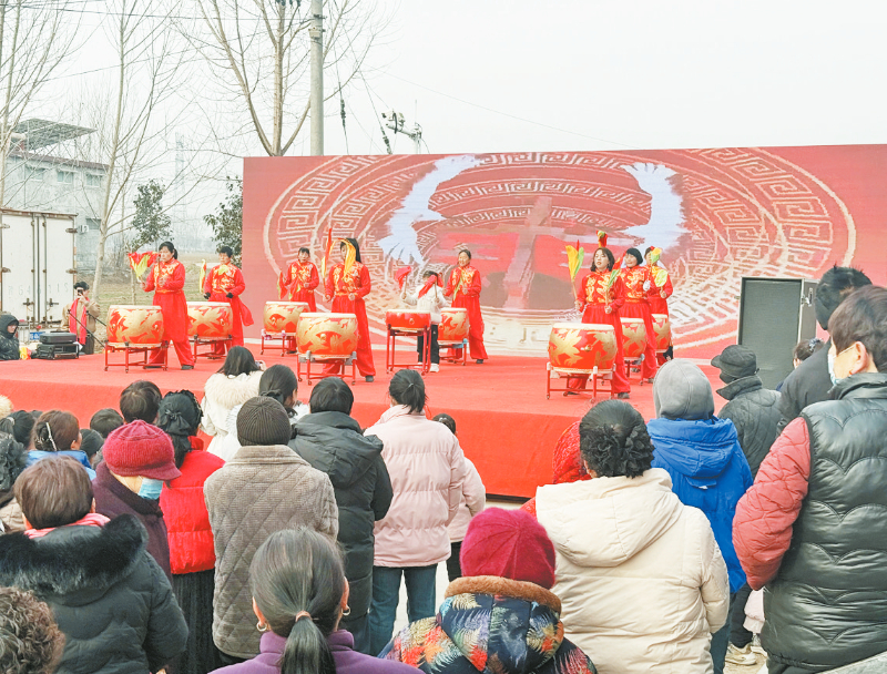 演出中,鼓手精神抖擞,鼓点铿锵有力;广场舞队员舞姿舒展,展现着新时代农民的精神风貌;小品《你莫走》以质朴动人的情节,演绎了乡村恋人相守相伴、共赴美好生活的温馨故事,表演引发全场观众的情感共鸣;压轴的赐福环节,更是将现场气氛推向高潮,寓意着新的一年福运临门、平安顺遂。