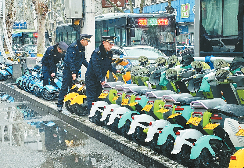当日,卫滨区城管局工作人员主要聚焦非机动车停放秩序管理工作,重点对辖区内道路两侧、公交站点、商圈周边等区域乱停乱放、占压盲道、摆放无序的共享单车、电动车进行清理归位、规范摆放,确保停放整齐、通行顺畅(如图)。