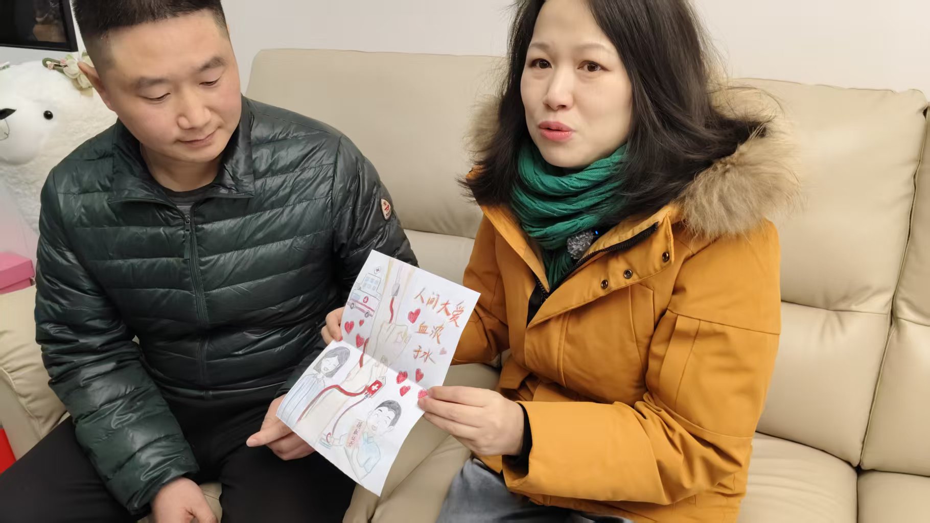 屋内暖意融融,雷女士细细诉说着康复后的生活。两个女儿健康成长,小家重拾往日的温馨。而她的爱人,也因这场生命的馈赠,主动加入了造血干细胞志愿者队伍,将这份善意接力传递。女儿亲手画的画作,成了最珍贵的礼物——画面上两只手紧紧相握,鲜红的血液串联起生命的脉络,周围的爱心,是孩子眼中最纯粹的温暖,也是这场生命接力最动人的注脚。