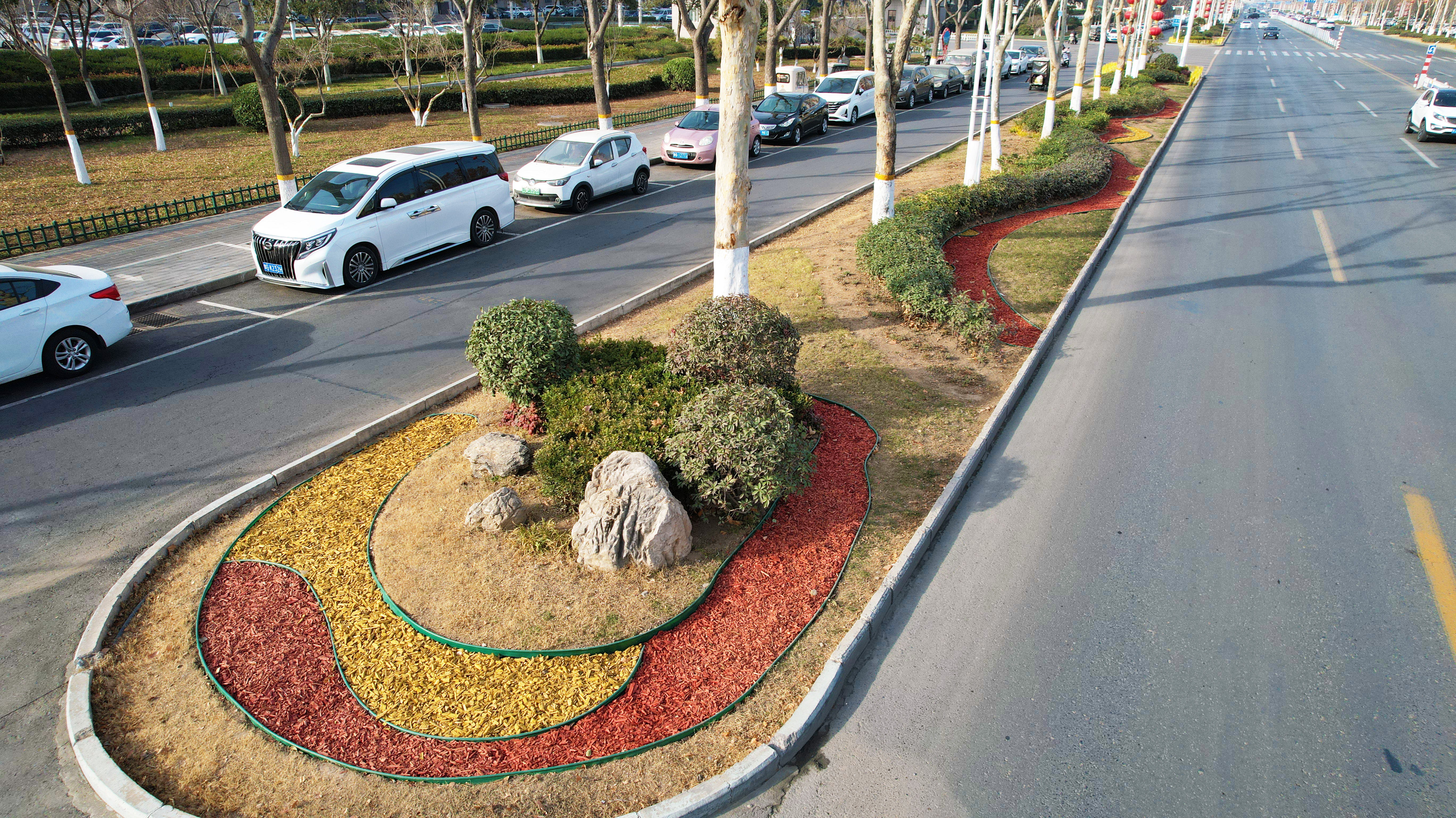 在具体应用中,我市针对不同绿化场景精准施策:树池处理上,用5至8厘米厚的有机覆盖物逐步替代传统树篦子、鹅卵石等硬质覆盖物,可抑制杂草生长、减少30%至50%的土壤水分蒸发,还能改善土壤板结,目前已在部分路段试点见效;林下及地被区域,根据土壤问题定制配比方案,土壤板结区采用3:7比例的硬质枝干碎与落叶碎混合增强透气性,肥力不足区添加落叶碎和腐熟菌剂加速有机质释放;花境营造上,3至5厘米厚的颗粒覆盖物铺于株间,与花卉色彩呼应,提升景观层次感。