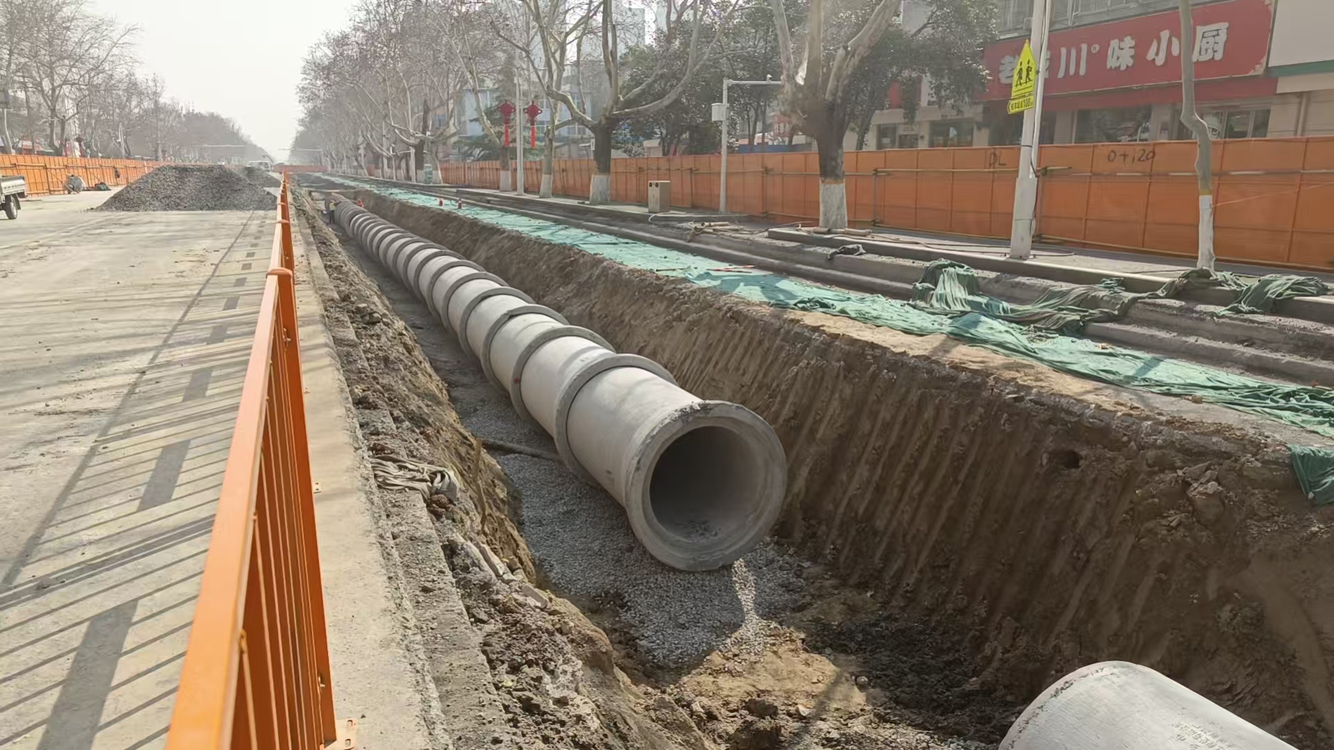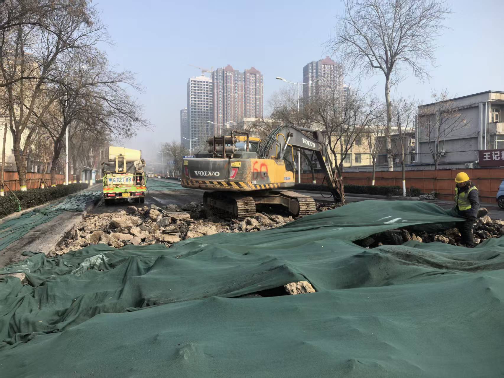 相关部门还优化调整平原路新飞大道交叉口等多个关键路口的信号灯配时,安排30余名协管员在高峰时段配合交通警察协助疏导交通,施工单位采取运输车辆错峰出行、裸土覆盖、雾炮湿法作业等措施,既保障了施工进度,又兼顾了通行安全和生态环保。