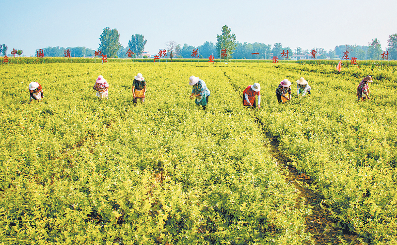 “有了科技力量的加持,金银花产业才能走得更远。”张伟告诉记者,近年来,封丘县强力推进产学研合作,对接河南师范大学、河南中医药大学、河南科技学院、省农科院等高校和科研院所,开展良种繁育、示范种植、药性分析及产品开发等深层次合作。目前,已培育出金银花新品种11个,有效解决了品种退化、绿色防治、产品研发等一系列问题。