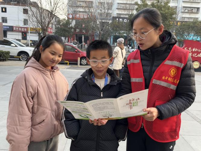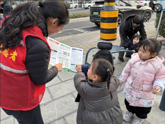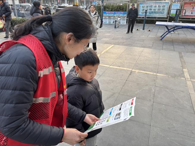 活动现场,社区志愿者们身穿红色志愿马甲,手持垃圾分类宣传页,向过往居民尤其是青少年儿童普及垃圾分类知识。志愿者们用通俗易懂的语言,结合手册上的趣味图文,用孩子们听得懂的语言,讲解可回收物、厨余垃圾、有害垃圾和其他垃圾的区分方法,还穿插“过期春联属于什么垃圾?”、“零食包装袋怎么分?”等贴近春节生活的互动问题。