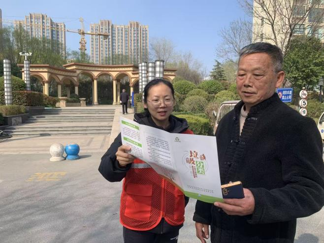 活动中,志愿者身穿红马甲化身“环保宣传员”,手持图文并茂的宣传折页,用通俗易懂的语言向居民和商户讲解垃圾分类知识。在沿街商铺,志愿者们耐心指导商户规范处理经营垃圾,明确可回收物、有害垃圾、厨余垃圾和其他垃圾的分类标准,提醒大家做好垃圾归集与定点投放;在小区广场,针对老年居民,通过实物对照、案例讲解等形式,细致解答“废旧电池如何投放”“厨余垃圾怎样破袋”等常见问题,手把手传递分类技巧,让环保理念变得直观易懂。