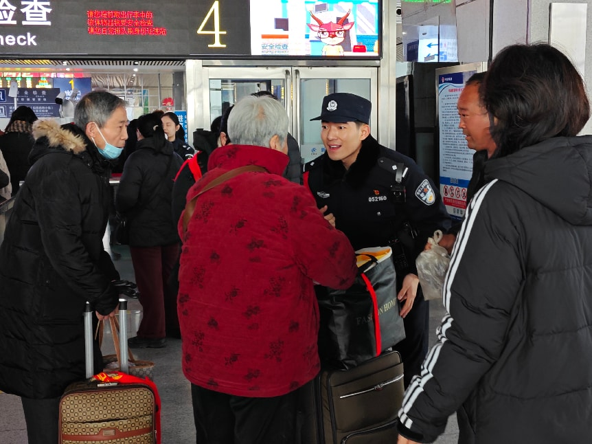 针对老年旅客出行时对车站智能设备不熟悉、行动节奏较慢、安全防范意识薄弱等问题,近日,新乡东站派出所民警在新乡东站候车大厅、安检口等区域开展专项帮扶服务,为老年旅客出行保驾护航。